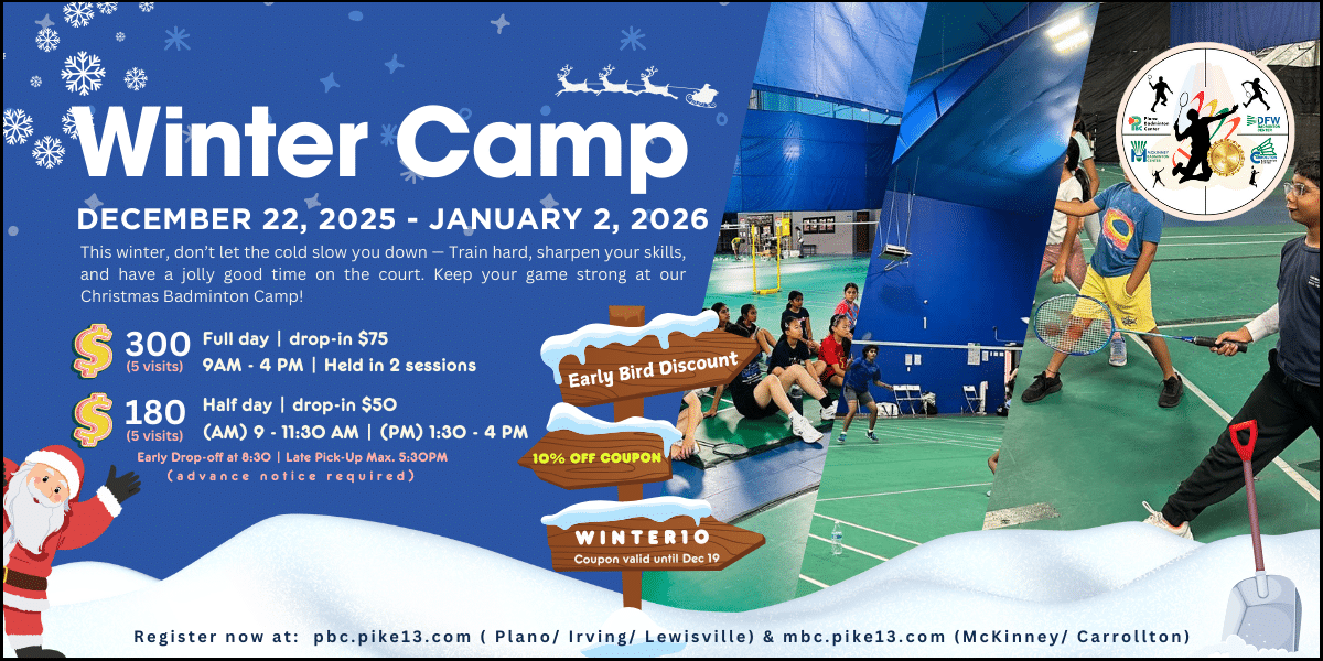In general, our camp is designed for novice and intermediate players who want to improve or learn some basics or fundamental skills. Students will learn proper grips, serves, nets, clears, and simple footwork. We combine our training with some agility and strengthening exercises to keep their bodies fit. Moreover, we also teach them how to properly stretch before and after the games. Finally, our most important goal is to make badminton fun for them. Students will be paired with each other to play several real games. This is a great opportunity for them to make friends, learn new skills, and have fun.